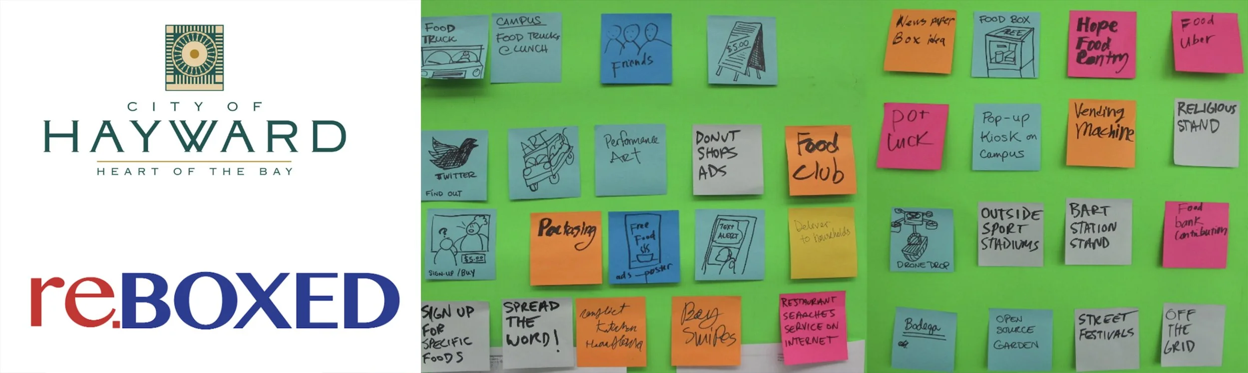 A pitch was made to choose one of the 17 UN sustainable goals. Solving world hunger was chosen and while that might sound hard to achieve, our group consisting of Laura, Stephen, Hung Le and Pierre used the Ideo/Acumen human centered design process to come up with a reasonable solution to help the food insecure here in Hayward, California.